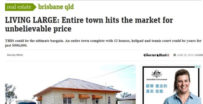 According to the Daily Mail, the Kunzhou town of Ellie Creek (Allies Creek) is on sale for just A $500000.