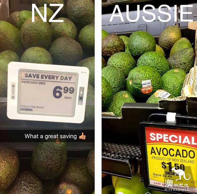 Photos on social platforms on Monday showed local avocados sold at New Zealand supermarkets for $6.99 each, while at IGA in Perth, Australia, avocados from New Zealand also sold for just A $1.50.