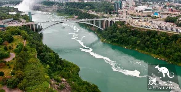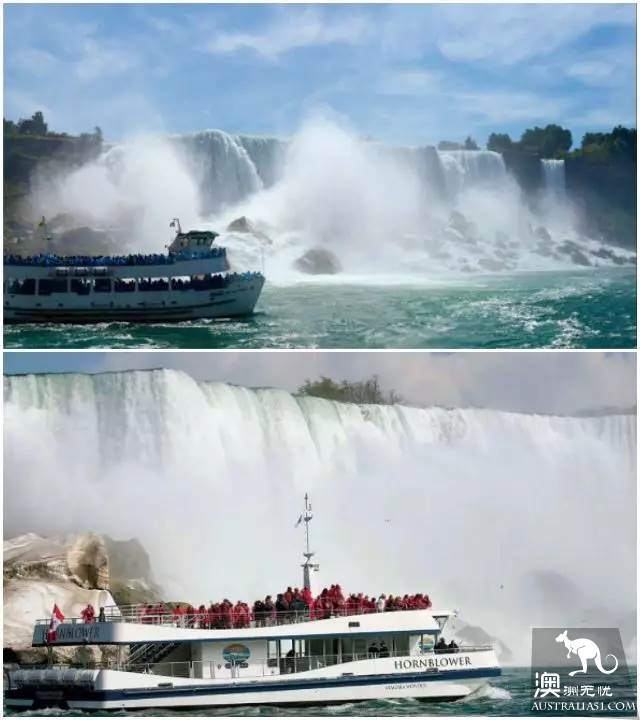 One side of the waterfall is the United States and the other side is Canada. If you go on a trip, you will see that American tourists wear small blue raincoats, Canadian tourists wear pink raincoats, and tourists from both sides often look across waterfalls.