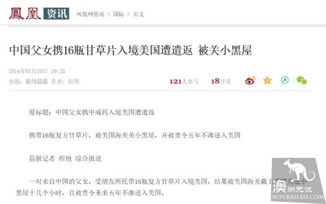 For example, China's father and daughter brought 16 bottles of glycyrrhizae into the United States and were not only repatriated, but also ordered not to enter the United States for five years.