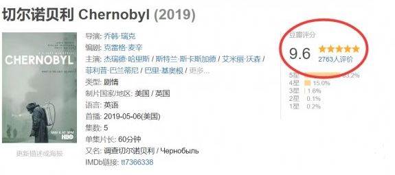 Until this year, HBO made a film to restore the Chernobyl nuclear disaster, which was well received all over the world, with a Douban score of 9.6 and 100% freshness of rotten tomatoes.
