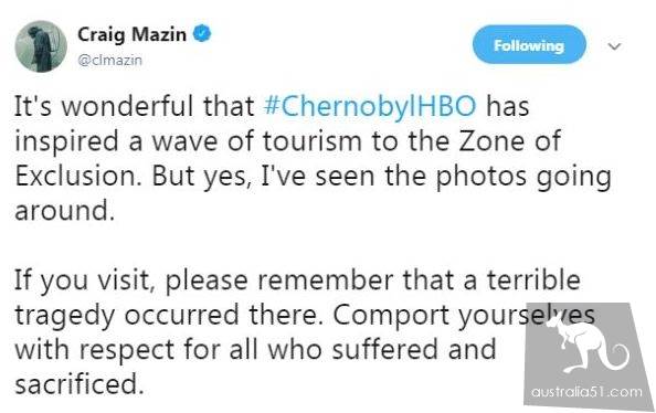 "I am very happy to see that the TV series has triggered a craze of people to travel to the Chernobyl restricted area.