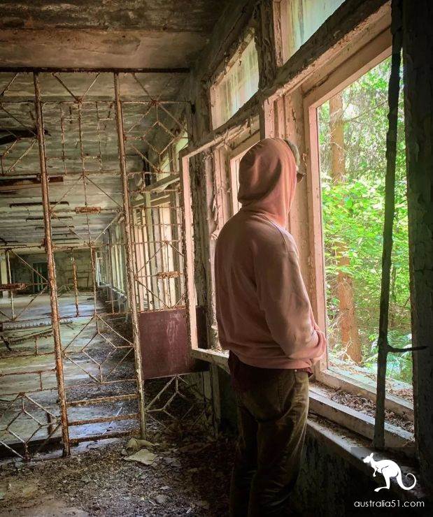 The decadent young man took a bottle of beer and sat on the restricted area, as if it were the only way to prove that he was the prettiest boy in Chernobyl: