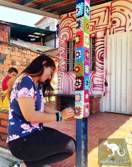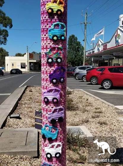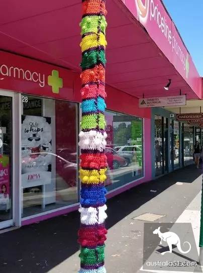 They gathered and pulled the extra wool balls out of the house, weaving all kinds of lovely designs, encased in community sculptures, fences, electric poles, and trunks. Such Yarn Bomb societies are found in all Australian cities.