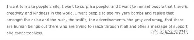 In a few days, Yarn Bombing's wool may appear on the streets of Sydney. When you know these stories and see these lovely pieces of wool on the streets, you must feel the power they are trying to convey: