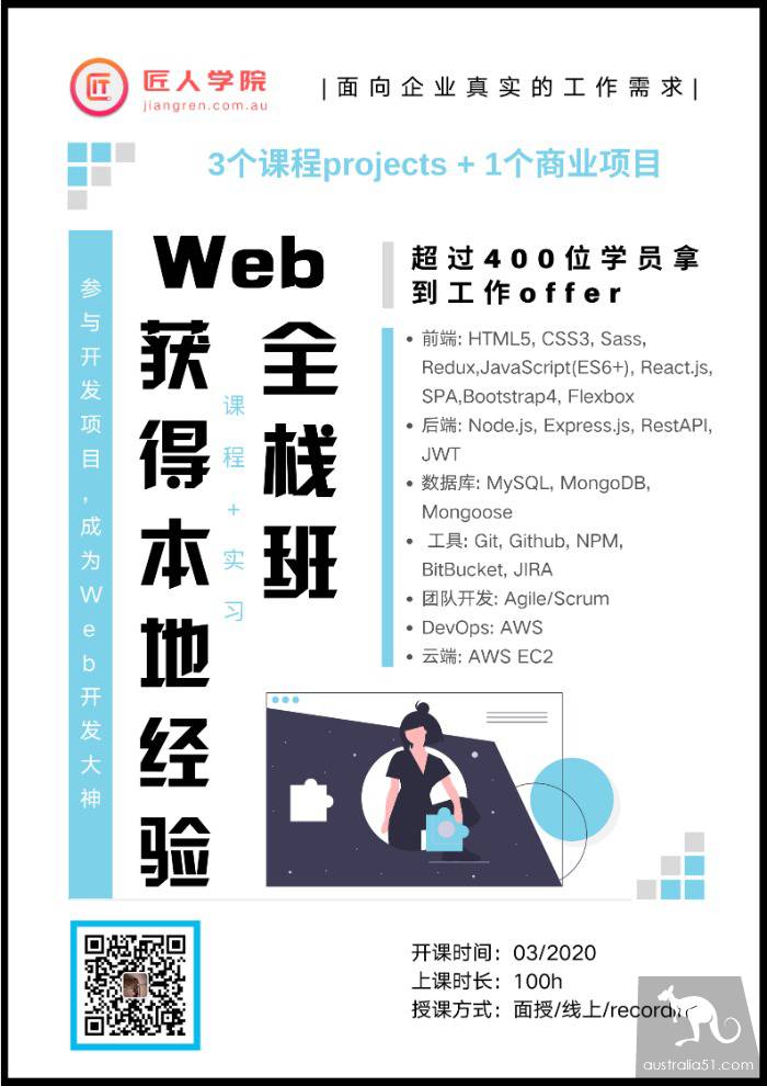 Craftsman College: jiangren.com.au our slogan: looking for craftsmen, using offer, to reject fail an exam craftsmen College coverage: IT community, university tutoring, skills training, job search training and other IT related business IT community: covering IT job search group, Sydney, Brisbane, Melbourne local group, large front-end, php, AI, block chain, Java, Mobile, Laraval and other professional and technical groups. Tens of thousands of activity per day also proves that we IT are a group of enthusiastic, ideal and more loving group college tutoring: covering all Australian urban colleges and universities, providing IT/CS related courses / 1V1 tutoring, and offering escort courses, sprint classes, homework lecture classes, 1v1 private customization courses and other skills training: zero basic web introduction training courses, Web full stack training course, zero basic data analyst course, data stack course, AWS certificate project course, DevOps project practice course, Java project practice course, BA project class, project internship plan, homecoming project course and other job search training: resume revision, interview guidance, career planning, simulation interview, Tech technical guidance, web/ data / product manager job search and employment guidance, etc. Return home employment service and so on! News flash! Now sign up for the 10th full stack class, which will open in March next year. The early bird price, oh, Australian IT job search knock brick, the most core skills GET from building personal web pages to commercial websites, their own code rich food and clothing quickly master the core technology for Australia and China to become the WEB stack god at an early date. Start with high salary offer quickly find Sydney craftsman Xiao Le registration craftsman Web full stack class official website certification: https://jiangren.com.au/city/sydney social app contact: sydneyjiangren email certification: [email protected]