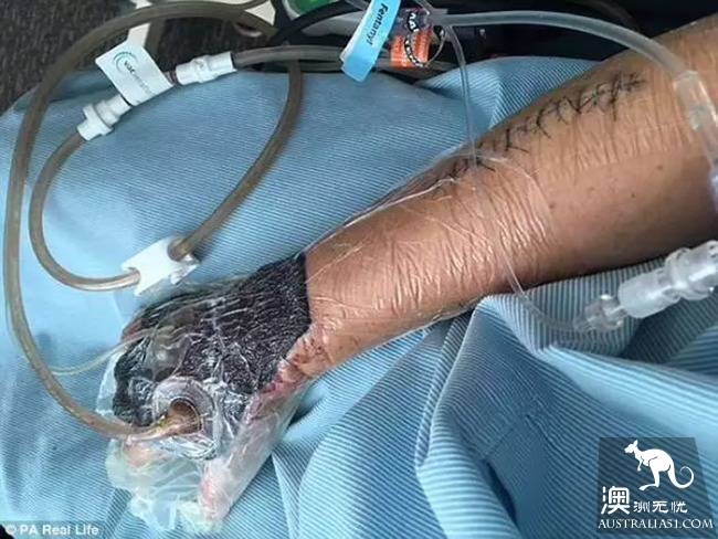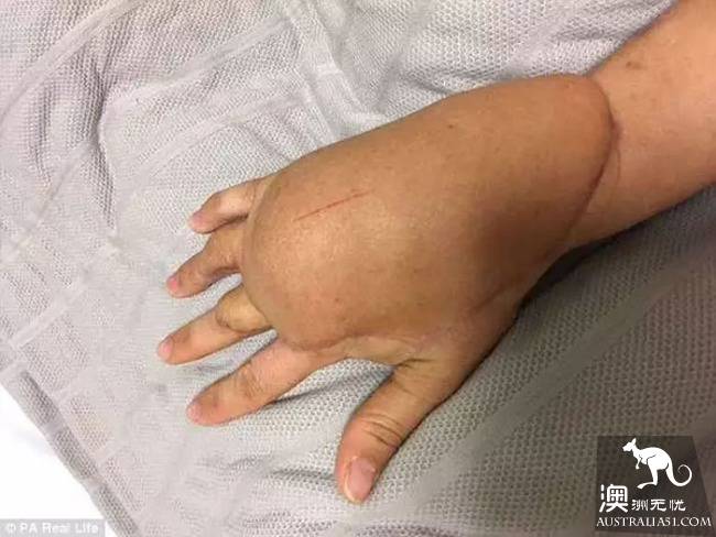 Then she took antibiotics in Greenslopes Private, but her hands grew bigger and bigger, and the pain spread to the whole arm! After a night's sleep in the hospital, Ms. Scott woke up in pain early in the morning.