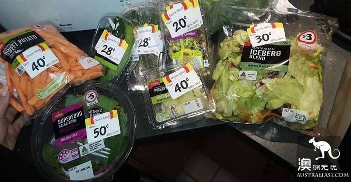 In the past few days, it has been found that the price of Dairy Farmers 2 liters of milk has dropped to 48 cents, two days before it expires, with cherries priced at 75 cents per box and salad at 30 cents per pack. And super green fried (super green stir-fry packets) cut the price to 50 cents-saving 90% of the money.