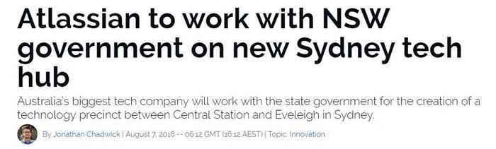 ZD Net:Atlassian collaborates with government in Sydney New Technology Center Project