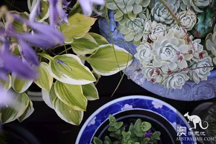 Succulent plants are most beautiful at the top of the classical flower urn. Of course, different potted plants and different flowerpots are different. For example, this pot of purple acacia, the best with blue porcelain flowerpot.