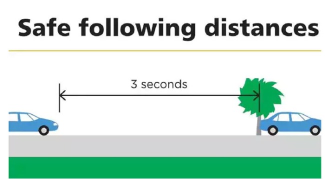 "safe vehicle spacing varies depending on conditions, vehicle type and vehicle speed. In general, when a vehicle is moving, the driver should keep a distance of 3 seconds from the vehicle in front to provide sufficient time to avoid a rear-end collision, "the new state transport department explained.
