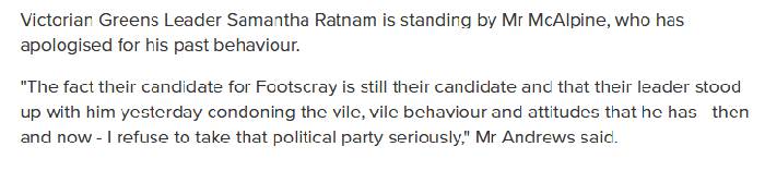 At the same time, the Green Party's Victorian leader also called Call, for Angus-he's apologized. What else do you want?