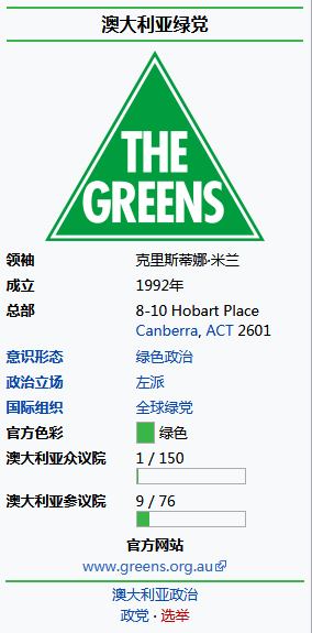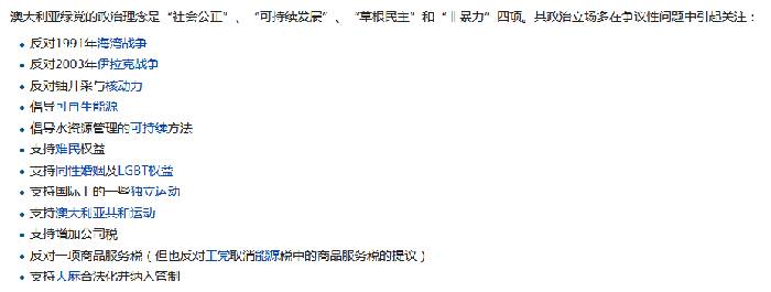 The Australian Green Party's political philosophy is "social justice", "sustainable development", "grass-roots democracy", "non-violence"