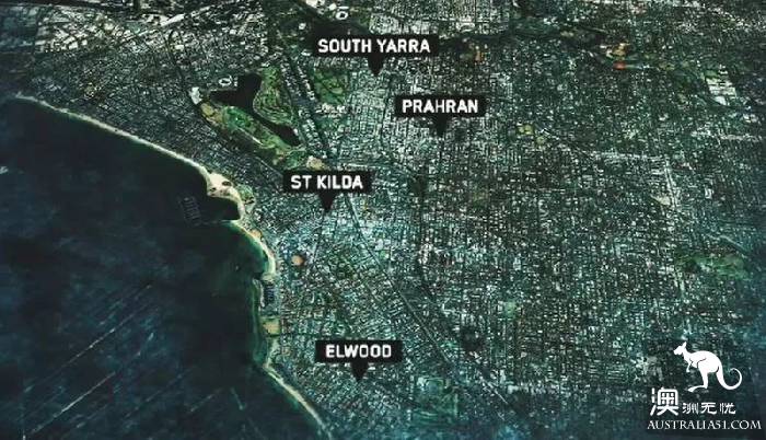 South Yarra, Elwood, St Kilda and Prahan. in Melbourne.