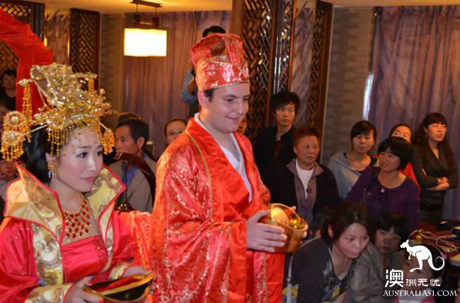 However, when many Chinese women happily wear wedding dresses and marry their "foreign husbands", they find that the gap between China and Australia is tearless in marriage customs.