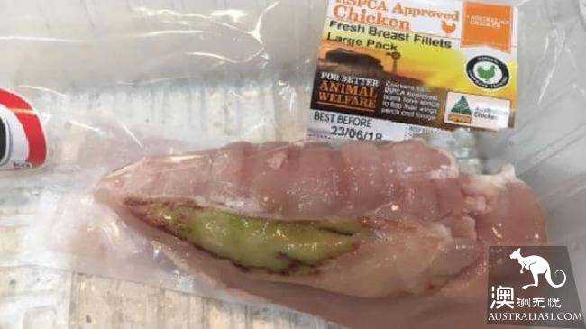 Jamie。 Ferguson (Jamie Ferguson) bought RSPCA-certified chicken from Northcote Place Mall in northern Victoria. She posted a photo on social media with a caption: "Watch out, everyone. This is the chicken they sell in Coles. I won't go shopping there again. "