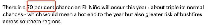 And the whole reason is. The Bureau of Meteorology predicts that the probability of a "baby" in Australia this year is as high as 70%! Three times as much as the rest of the year!