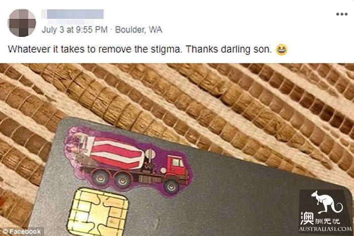 So, like many people, the mother posted a sticker on the card to cover up its true source.