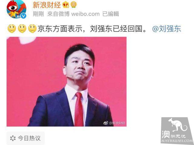 On the afternoon of the 3rd, "Liu Qiangdong returned to China" was on the Weibo hot search list.