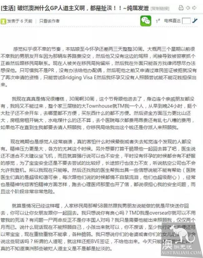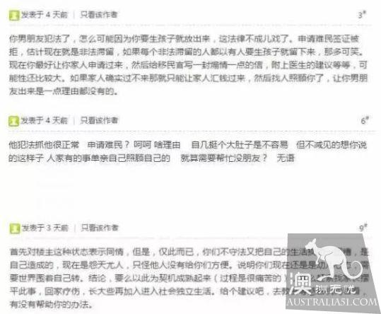 Then there was this post scolding the Immigration Service and Australia, mostly from the woman's complaint: how can I let a mother-to-be who is about to be born so worried about it? Is it easy for me to have a baby? To live, to find a lawyer, to spend money, and to miss her boyfriend!