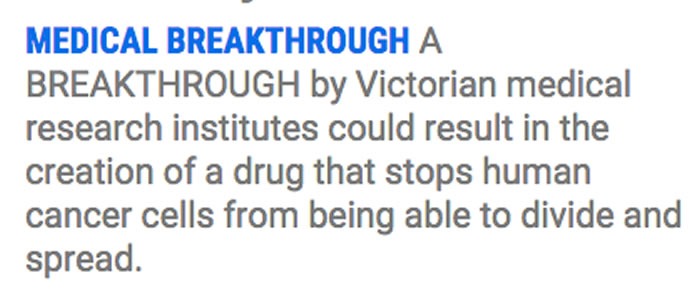 Now, they're working with drug companies, and all researchers are looking forward to getting the drug officially launched as soon as possible. Once launched, I believe this will certainly be a blessing for cancer patients.