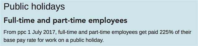 The point is that Australia has strict pay requirements for holiday and overtime work, and employees can report to the Fair Work Commission if employers fail to pay as required by law.