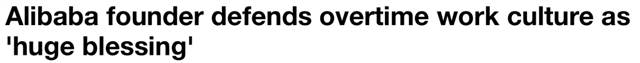 Later, Ma Yun also spoke freely about his views on "996" in internal exchanges. He felt that "996" was a blessing and a great blessing, because there were many companies and many people who did not have the opportunity to think about "996." Because their company may be closed at any time. If you can't work 12 hours a day, you don't deserve to be Ali! Many people in this world want to live a good life and hope to succeed, but if they don't give more effort and time than ordinary people, how can they succeed?