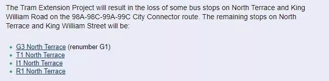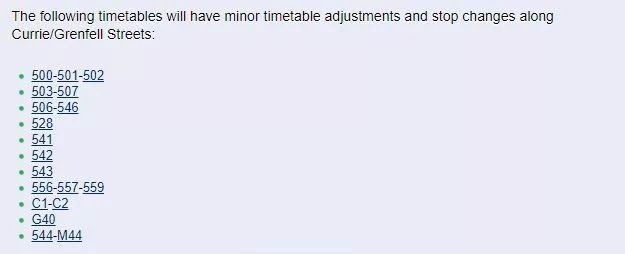 And the following bus North Terrace parking point will be adjusted to Grenfell and Currie streets.