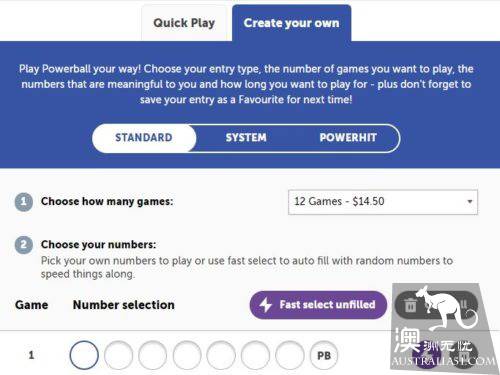 Standard mode is relatively simple, choose your own number, and then choose a number of PowerBall can.