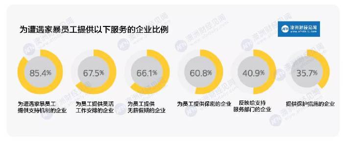 In addition to official written policies, about 85.4 percent of companies provide other forms of support to employees who have suffered domestic violence, up 3.5 percent from the same period last year.