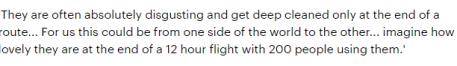 "Please don't go to the toilet on the barefoot, imagine a 12-hour end of the flight,200 people used the bathroom, how 'lovely' the bathroom would be."