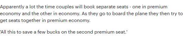 Often meet a couple will book different seats, one in advanced economic cabin and one in economic cabin, after boarding the plane, they will sit down in advanced economic cabin together.