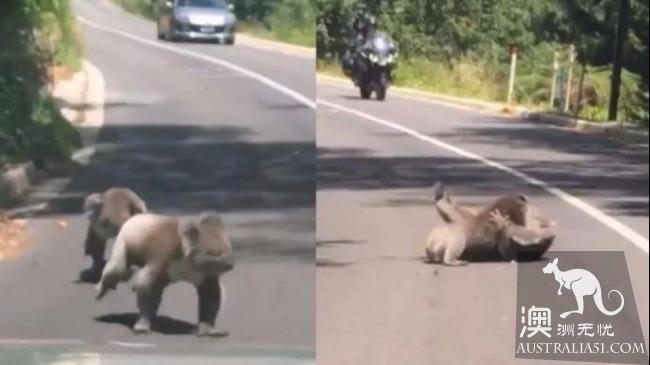 The lady said she had never seen a fight in the middle of the road before. Fortunately, koalas are driven out in time, or they are likely to be run over by a big Mercedes-Benz truck!