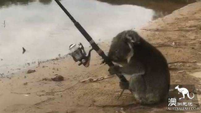 According to Radio 9, there was a funny scene on the banks of the (Murray River) River in northern Victoria. A cute koala grabbed a fishing rod, as if immersed in the fun of fishing.
