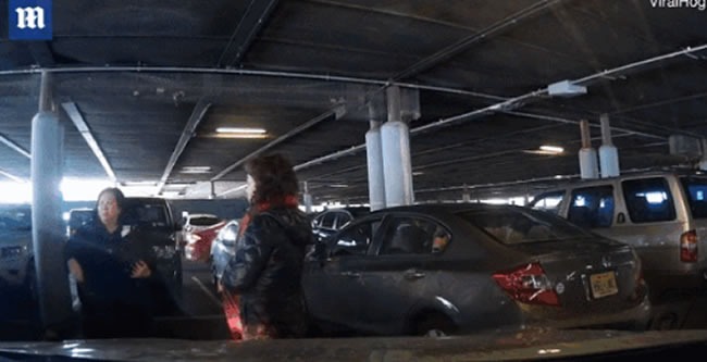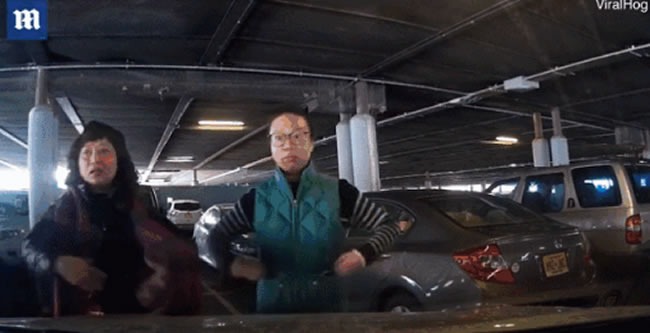 It happened last Saturday (March 10) at more than 1 pm. The scene was filmed in a parking lot in Flooding, Queens, in a car recorder in a passer-by car, one of the Chinese communities in New York!