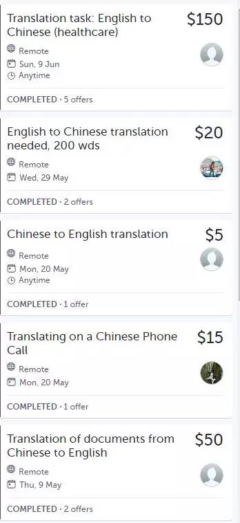 There is a special translation section on Airtasker, in which English-Chinese translation is the most popular category.