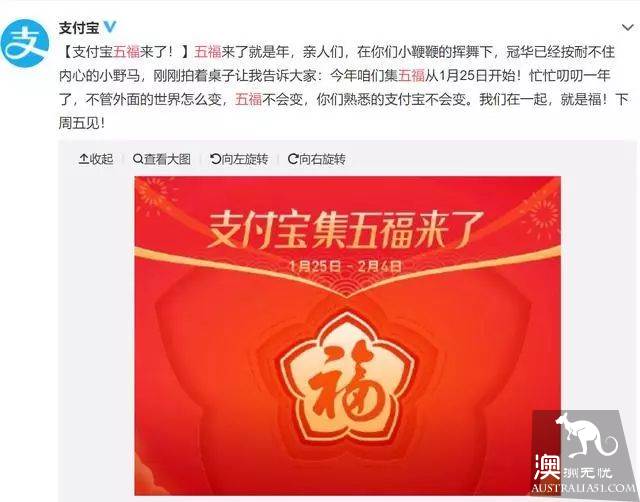 In addition, Alipay also designed fortune stickers for Australian relatives during the Spring Festival, so that you can feel the thick festive atmosphere in a foreign country.