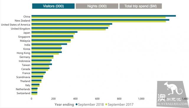 According to the latest tourism report released by Australia's government, in the 12 months to September last year,