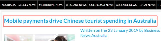 Alipay's ubiquity in Australia has not only greatly boosted the consumption of Chinese tourists, but also facilitated domestic tourists accustomed to mobile phone payments.