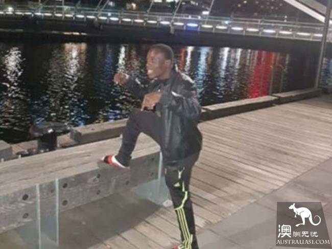 Fotsala thumbs up and grins in front of a series of landmark buildings, including the, Seafarers Bridge and Morang railway stations.