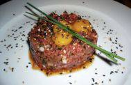 This is beef tartar, raw egg beef, the most primitive way to eat is to beat an egg, with sea salt and black pepper and local spices, in order to eat the flavor of beef itself.