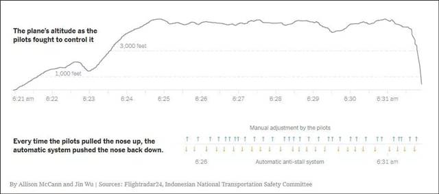 文章指出该机型电子系统的漏洞:为防止飞机空中失速,飞行控制系统可以转动飞机的平尾,让机头朝下。但客机服役后,该机型新功能MCAS转动速度要比初始安全评估标出的速度高出四倍多。
