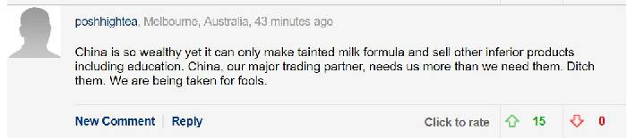 China is so rich that it can only produce tainted milk powder, and even education is a shoddy product. China is our main trading partner, they need us more than the contrary, abandon them, they treat us as fools.