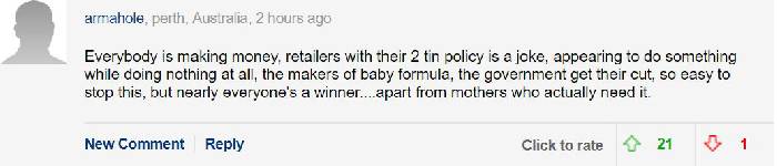 Everyone wants to make money. Retailers say on the surface that they can buy two cans, but in fact, the milk powder producers and the government have power in their hands, so it is easy to crack down on this phenomenon, but the end result seems to be: everyone is the winner. Except for mothers who really need milk powder.