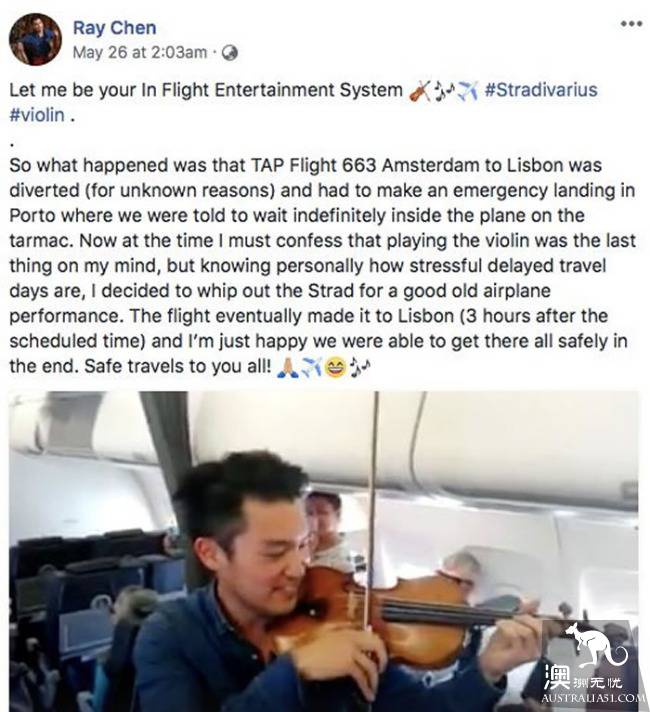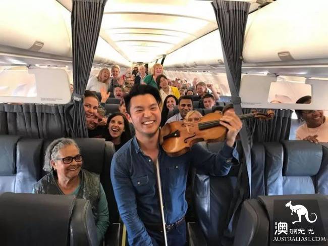 The Chinese young man named Chen Rui, Australian Chinese, violin genius, the most important is the sun is kind, see passengers in the cabin extremely nervous, decided to use music to infect everyone, will bring joy and happiness to everyone.