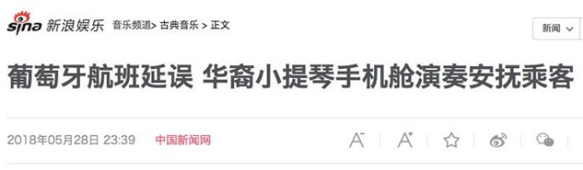 Chinanews.com: < delay in flight in Portugal, Chinese violin cellphones play to appease passengers]