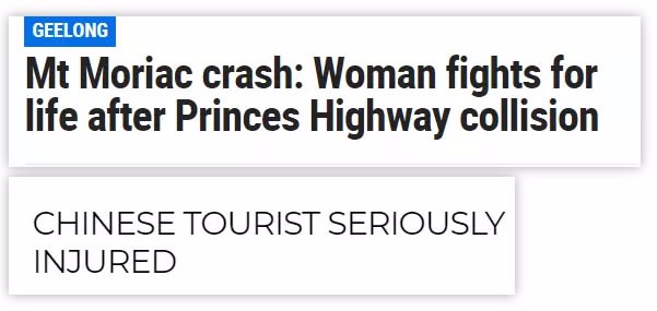 After arriving in Australia, many old drivers who dominate Chinese roads are not used to driving on the right and are not familiar with Australian traffic rules. In addition, a lot of self-driving lines winding, slope changes, resulting in a number of horrendous accidents. Just two weeks ago, a 36-year-old female tourist from Beijing, China, had a serious traffic accident in Geelong, near Melbourne.