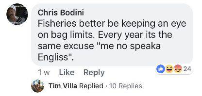 "it is best for fisheries managers to check fishing restrictions. Every year these people use the same excuse: I can't speak English! "