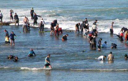 People, men and women, old and young, went to the sea to catch abalone.