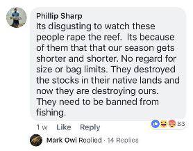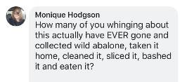 "it's disgusting to look at this group of 'rape' reefs! It is because of them that our fishing season is getting shorter and shorter, and they don't even think about the size of abalone and the fishing restrictions! "
